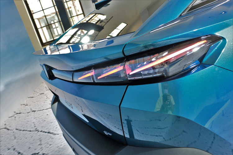車側看上去比起一般轎車還要高,車身尺寸長寬高分別為4,687mm、1,859mm以及1,478mm,軸距則為2,787mm。流線的車頂一路延伸至車尾,Fastback斜背跑格造型結合翹臀車尾,彰顯與眾不同的跑車氣勢。Full LED 3D尾燈雨量黑腰帶設計,大膽呼應車尾底部大面積雙黑化材質後保險桿。
