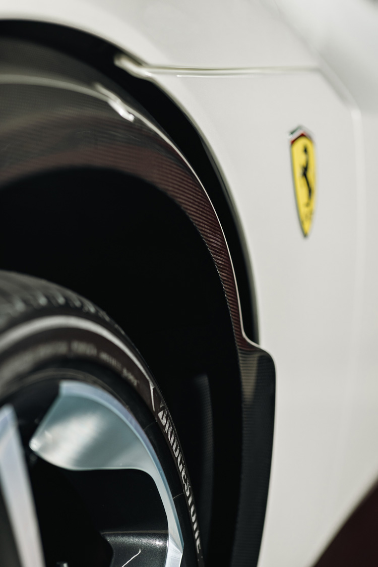 在設計上,法拉利設計師們從零開始設計車身架構,其全新車架配置了碳纖維材質車頂,達到減輕重量並降低重心的目標。其中一大創新的設計亮點為引入後鉸鍊式後門,又稱作「歡迎門」,此設計提供新車在維持緊湊車身比例的同時,讓乘客進出時更加輕鬆便捷。在新車座艙設計,配備了四個附有加熱功能的全電動座椅,可為四名成年人提供優異的支撐力及舒適的乘坐空間與體驗。