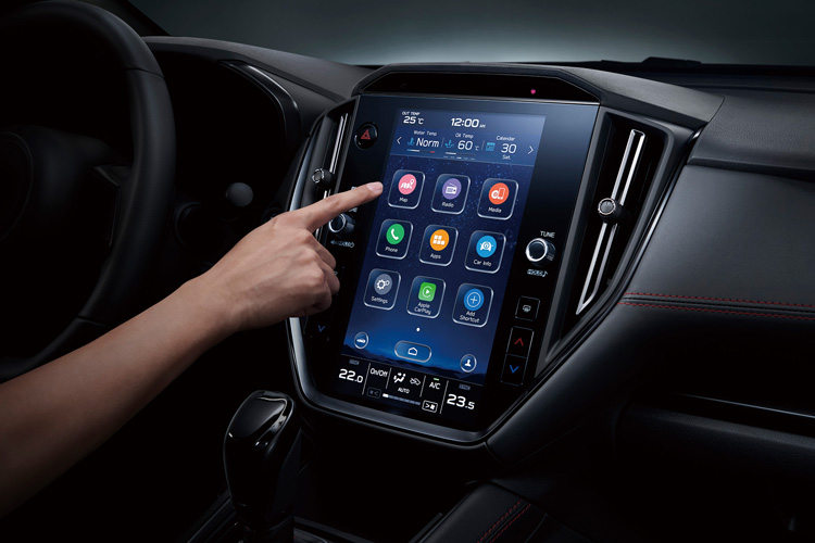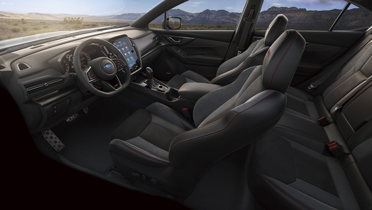 The All-New WRX 及WRX Wagon的車室座艙堪稱有史以來最具科技取向並兼具高質感的完美結合,除了以極具熱血速度感的紅色車縫線鋪陳,更融入賽車元素且有性能代表STI字樣的D型皮革方向盤,並導入科技感十足的11.6吋智慧影音觸控螢幕,透過直覺化的介面整合娛樂資訊、雙區恆溫空調控制、Apple CarPlay、Android Auto及多項重要功能,讓駕駛與乘客都能夠享有兼具科技感與便利性的駕乘感受。