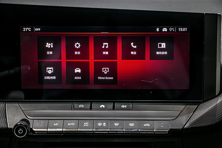 座艙以10 吋數位儀錶搭配10吋多媒體觸控螢幕,兩者皆提供全中文顯示;其中儀錶可自訂 5 組駕駛所需資訊,中央螢幕則支援手機無線連結功能。