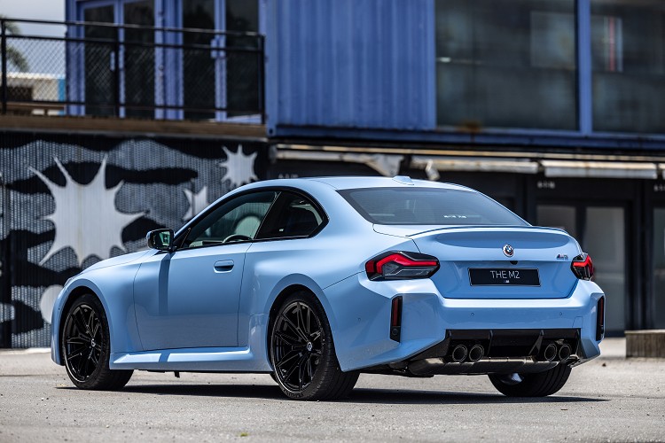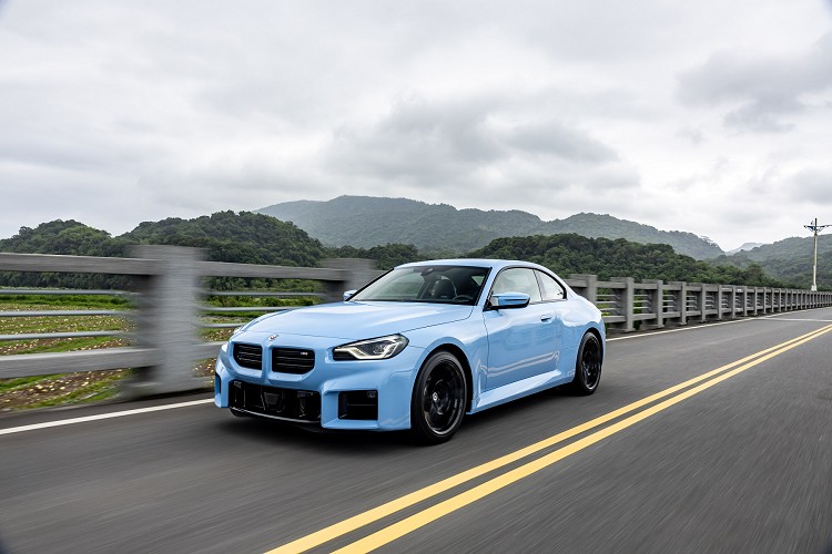 全新世代BMW M2車身尺寸俐落短捷,車長較BMW M4減少214mm,軸距縮短110mm,與第一代BMW M2相比則加長了54mm,除增添後座腿部空間,操駕感受更格外穩定; BMW M2車寬較BMW 2系列增加49mm,寬闊的外觀造型極具運動化跑格。無邊框的雙腎型M橫柵式水箱護罩,與大面積的下氣壩及兩側進氣口,讓冷卻系統和空氣力學平衡的功能發揮最大效益,方正的矩形設計更彰顯BMW M2獨特大膽的專屬語彙,融合在前保桿輪廓中的頭燈造型則是向經典的BMW 2002致敬。全新世代BMW M2專屬的M Zandvoort Blue車色,高調且突顯M2雙門跑車運動化外表的熱血氣息。