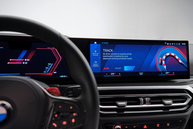 全新世代BMW M2更升級多項頂尖科技配備,包括極具未來感的懸浮式曲面螢幕及全新BMW iDrive 8.0使用者互動介面,M車手所需的車輛資訊以BMW M專屬的視覺設計與工具選項,清楚地呈現在12.3吋虛擬數位儀錶與14.9吋中控觸控螢幕上;而首見於BMW M2車系的M車況抬頭顯示器,結合M專屬介面及換檔指示燈,讓駕駛無論是在穿梭城市道路或馳騁專業賽道時,皆能全心投入。駕駛也可利用M Setup車輛動態設定,根據不同的駕駛場合改變避震器阻尼、底盤、轉向系統回饋、煞車反應等設定,M多功能真皮方向盤兩側的紅色M Drive(M1/M2)模組化快捷記憶鍵,提供兩組個人化駕駛動態設定,隨心靈活定義最佳的個人操控狀態。