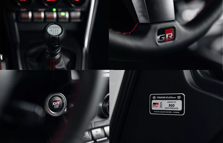 GR86 TRUENO車型標準配備18吋十輻式鋁圈以及黑色車門把手和黑色後照鏡飾蓋。動力方面維持原廠,水平對臥2.4升自然進氣引擎,最大馬力有228匹和250牛頓米最大扭力,變速箱可選擇自排或者手動系統。TRUENO版的性能套件原廠尚未對細節公布,套件適用於2022年和2023年版本,都能透過售後進行改裝升級。