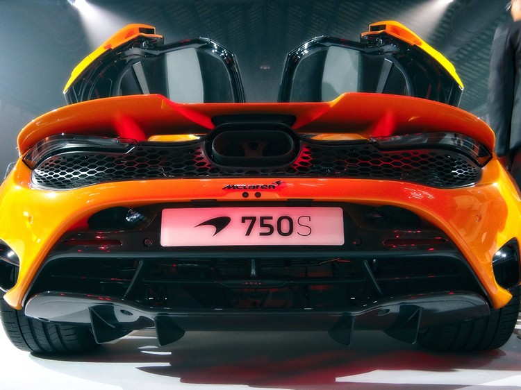 車頭部份更為低伸,並有全新設計的側裙進氣口和後輪拱通風口,後葉子板也增加長度,有助於改善散熱和導流效率。車尾最引人注目的是面積較720S加大20%的碳纖維主動式尾翼,另有與尾燈等高的中置雙出排氣管設計,V8引擎動力系統透過雙層玻璃可一覽無遺。而在敞篷750S Spider,則以透明飛拱式C柱設計,以及11秒內完成開闔過程的軟頂,打造與車室外環境合一的奢華感受。