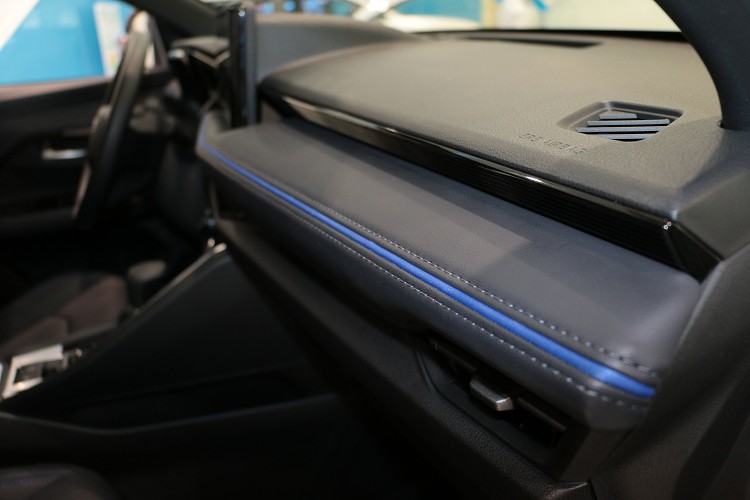 YARiS CROSS以駕駛者為導向,座艙採雙層式環艙設計,創造出讓駕駛者能夠專注駕駛的空間,同時亦保有副駕乘客寬闊的空間感受。內裝以大量鋼琴烤漆搭配浮雕設計門飾板,增添車室質感,座椅則以藍色縫線點綴(潮玩版),創造年輕動感的風格。