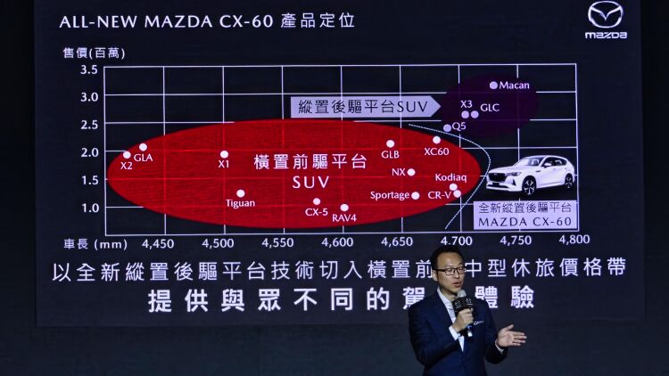 Mazda引進新世代休旅CX-60,共導入搭載2.5L四缸動力的三款車型,以及3.3升六缸動力一款車型,預售價120萬元起。MAZDA CX-60標榜採用同級唯一的Large Product Group縱置後驅底盤,讓消費者在以前驅休旅車為主的價格帶裡,有不同以往的全新選擇。