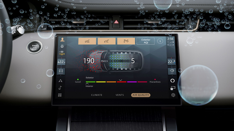 New Range Rover Evoque P250 Dynamic SE車型首次標配了進階車室負離子系統含PM2.5懸浮微粒過濾與二氧化碳感測功能,先進的車內空氣品質管理系統透過按下Pivi Pro中「空氣品質」頁面上的啟動按鈕,系統將即時管理車艙內包括二氧化碳、過敏原與懸浮微粒濃度,不僅促進全車成員的健康並可維持駕駛的警覺性,提供最潔淨的座艙環境。使用nanoe X技術來對減少車艙中包括病原體、細菌、過敏原與氣味的產生,車主可透過中央螢幕所顯示的空氣品質指數(AQI),即時監測其所在位置車內外的空氣品質。