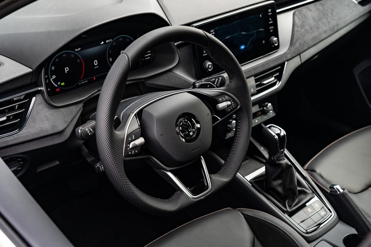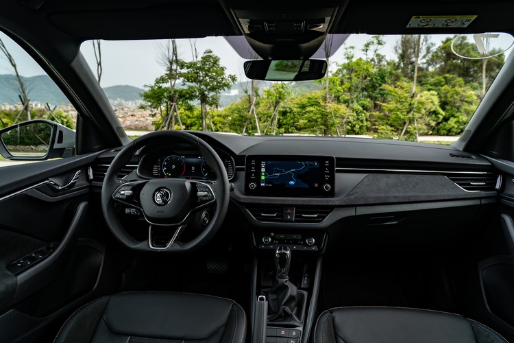 在座艙格局上,新Scala沿用概念車Vision RS設計理念,運用軟性面料及高光澤飾條,再援引水晶切割線條設計筆觸,打造出令人耳目一新的質感車室空間。前方控台上除10.25吋全螢幕全彩數位儀錶板,可帶來清晰易懂的車用資訊判讀介面外,懸浮式彩色觸控MIB多媒體資訊娛樂系統亦同步升級至8.25吋,並支援無線Apple CarPlay以及Android Auto智慧型手機連線功能。