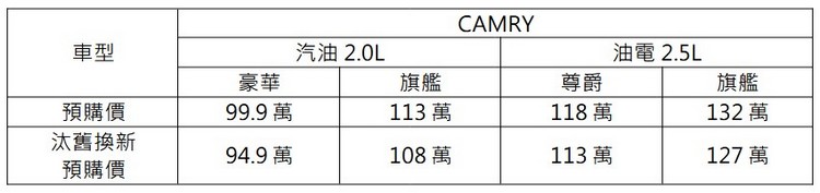 TOYOTA Camry小改款預售開始