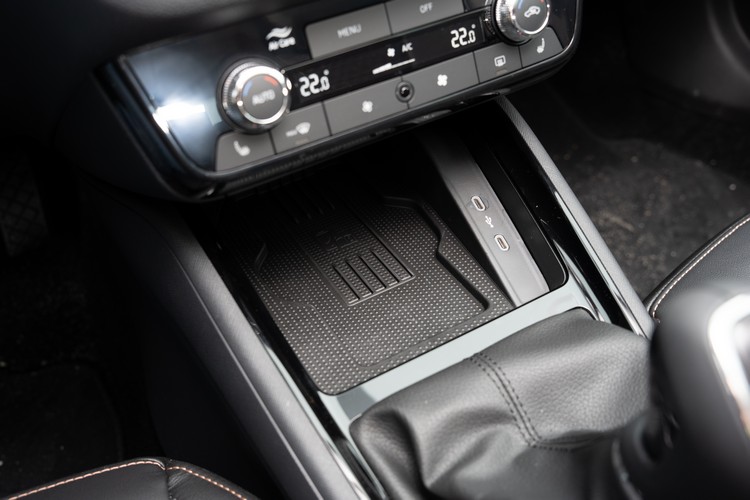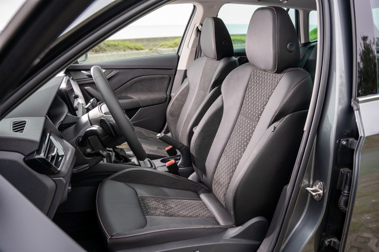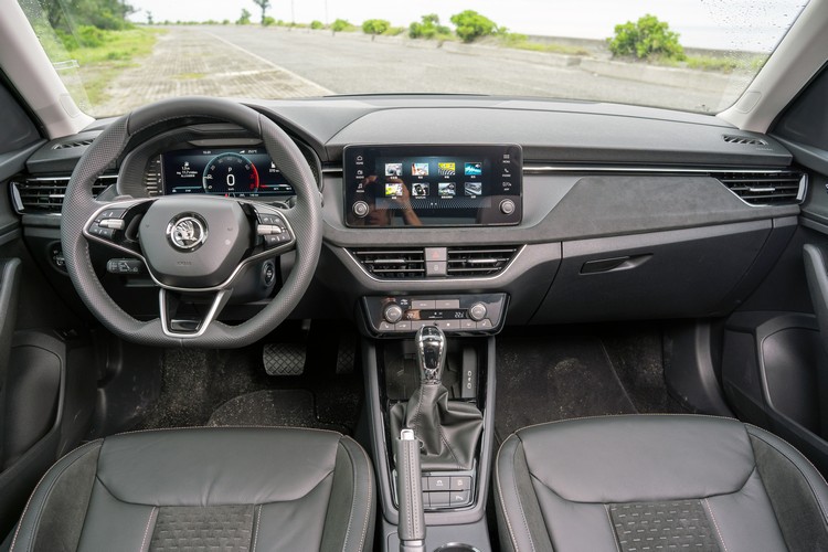 新Kamiq內裝上採用滾橘色縫線的 Suedia/真皮混搭包覆座椅,Suedia 材質的飾板與門邊飾板搭配高質感銀色飾條也營造內斂沉穩的質感與氛圍。