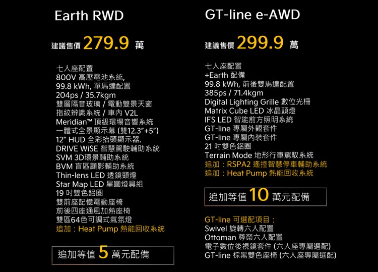 其中GT-line採用全球首創的數位光柵及冰晶頭燈,同時搭載GT-line專屬外觀套件,以運動化前後保桿、黑化車頂行李架、黑化後視鏡,以及21吋專屬鋁圈設計,營造出精緻與大器並存的跑格氣息。