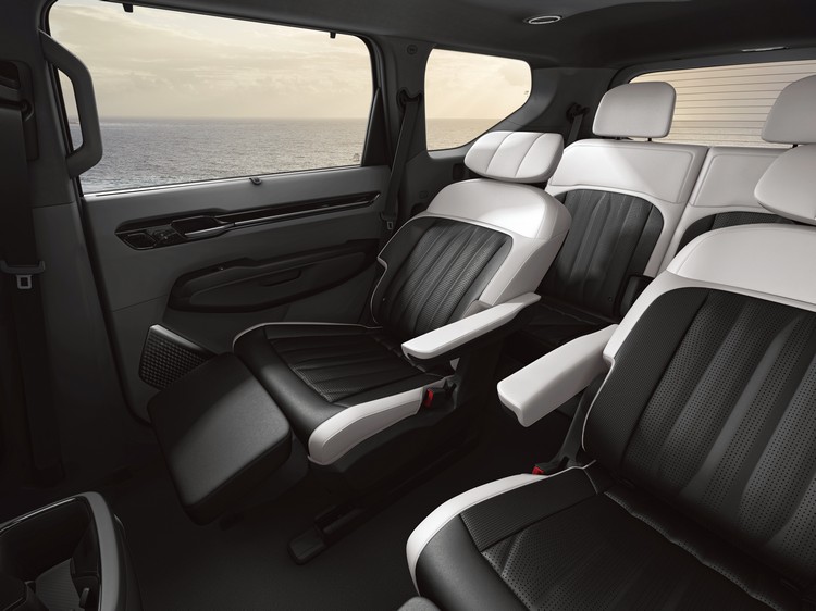 尊榮六人座椅則提供第二排電動調整功能、蝴蝶枕、電動腿托與一鍵舒適功能以及中央收納箱含托盤,貼心的設計打造最高級的乘車享受。