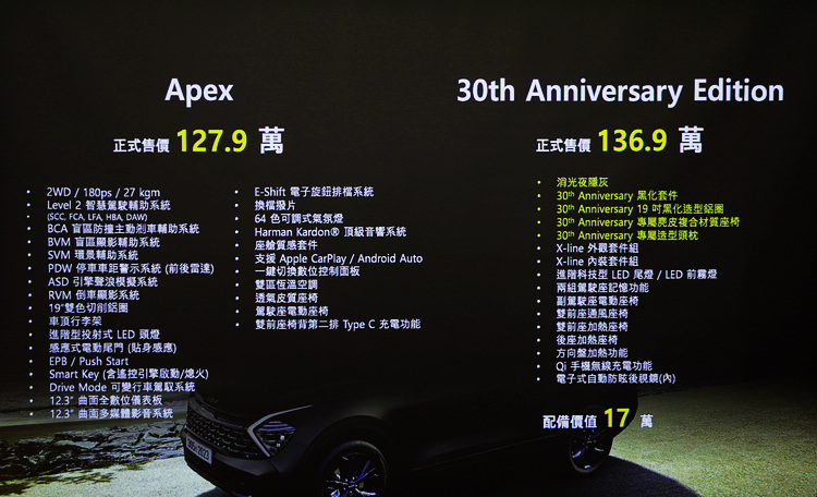 ▲Sportage 30th Anniversary Edition新增價值17萬的多項專屬配備與設計,並開出136.9萬的正式售價。