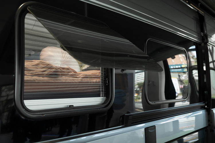 一、寬敞舒適的「起居室區」:車廂內部容納車宿所需要的實用配備,並標配兩側各634mm的「寬敞右側滑門含防蚊紗簾」,可雙向滑動式設計,兼顧車宿實用的防蚊及通風功能。