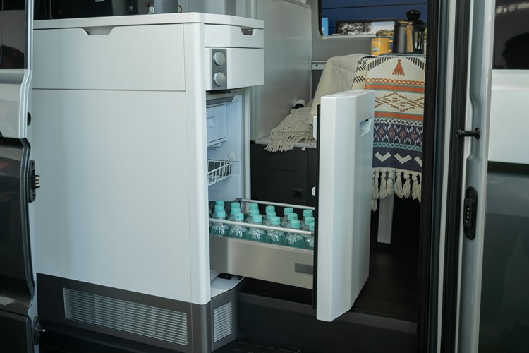 三、多元完善的「廚房區」:配置70 公升三層抽屜式多層冰箱,可讓乘員們有效分類儲藏;同步搭載雙爐烹飪瓦斯爐,讓乘員快速野炊烹煮。