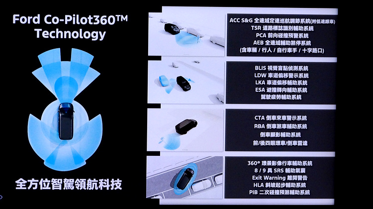 車室特色![]() ▲8吋全彩液晶智慧多功能儀錶板、13吋全彩觸控螢幕配置,搭配排檔撥桿以及EPB按鍵式電子手煞車,使前艙整體車室格局更具科技感及簡潔大器。座艙特色在於高度數位化設計,導入8吋全彩液晶智慧多功能儀錶板、13吋LCD全彩觸控螢幕,並配備SYNC 4娛樂通訊整合系統,整合無線Apple CarPlay及Android Auto智慧手機連結功能。