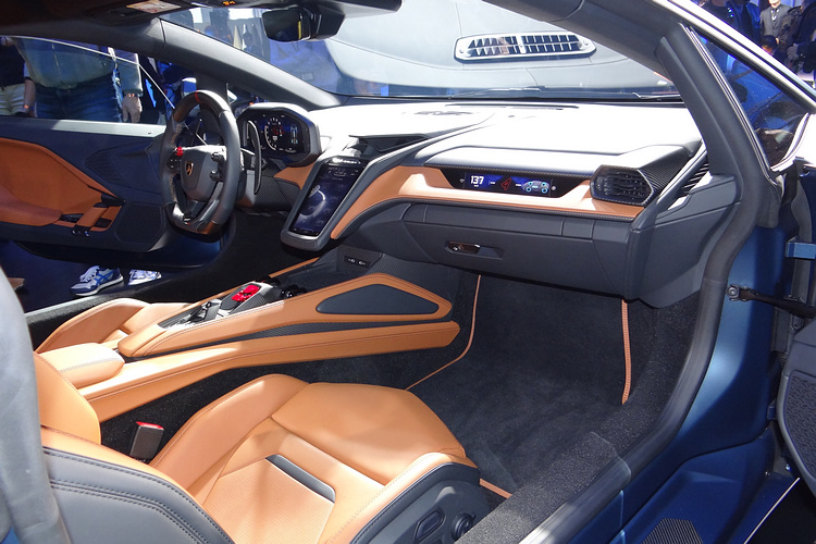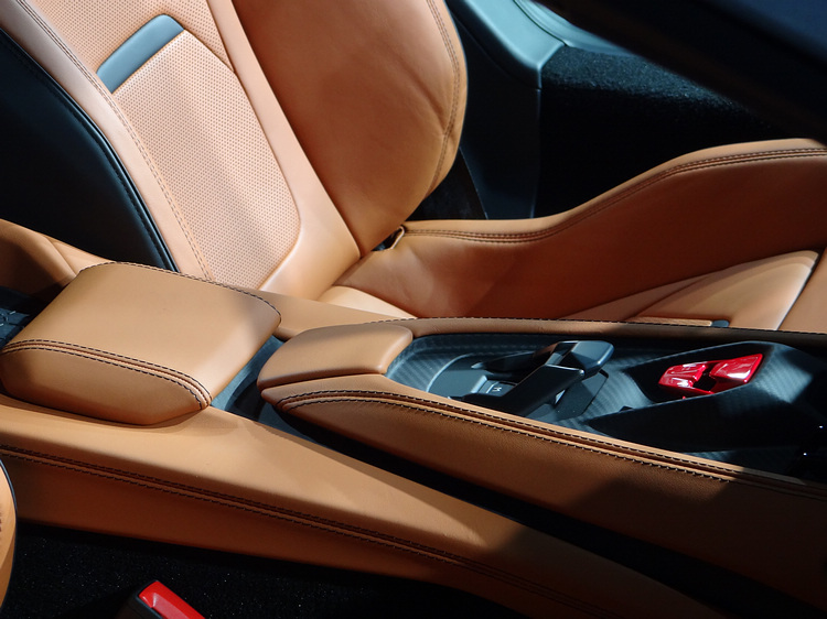 座艙以低座椅位置、輕薄的儀錶和方向盤的傾斜角度,都呈現出戰鬥機或賽車般的操作體驗。內裝以碳纖維、皮革和超細纖維作為材質,而啟動鈕、電子排檔桿和方向盤上方紅色指示線,都彰顯其運動氣息和動感美學。