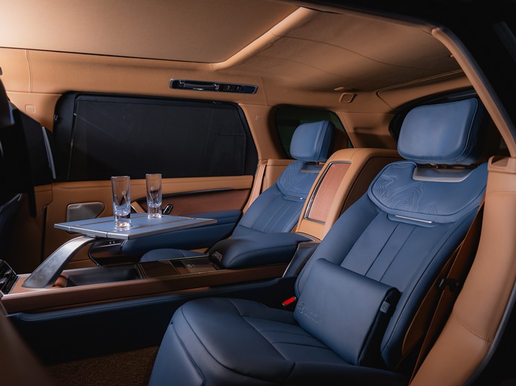 Range Rover SV Taiwan Edition 福爾摩沙珍藏款搭載 SV Signature Suite 四座旗艦套件,後座採用進階舒適行政總裁後席,雙座椅支援電動調整與冷風、加熱、記憶與熱石按摩功能,可為兩名後座乘客提供無與倫比的乘坐體驗。固定式後座中扶手鑲嵌的智慧座椅控制裝置,可針對各項後座功能進行控制;電動收納摺疊桌從固定式後座中扶手優雅升起,精美設計的支架具有轉向功能,在需要時提供便捷的工作空間。後座亦配有冷藏空間可典藏香醇,必要時與同行貴賓一同品酩,享受一趟極致尊榮的現代奢華移動旅程。