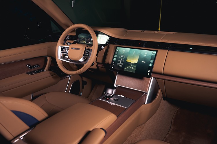 Range Rover SV Taiwan Edition 福爾摩沙珍藏款以長軸車型為基礎,採四座旗艦配置,運用前、後座雙色的對比配色,創造色彩與和諧的氛圍,前座採用香芹籽棕近苯胺皮革,後座則採用名為自由藍的半苯胺皮革飾面,精緻的車艙配色捕捉了大地和海洋的精髓。