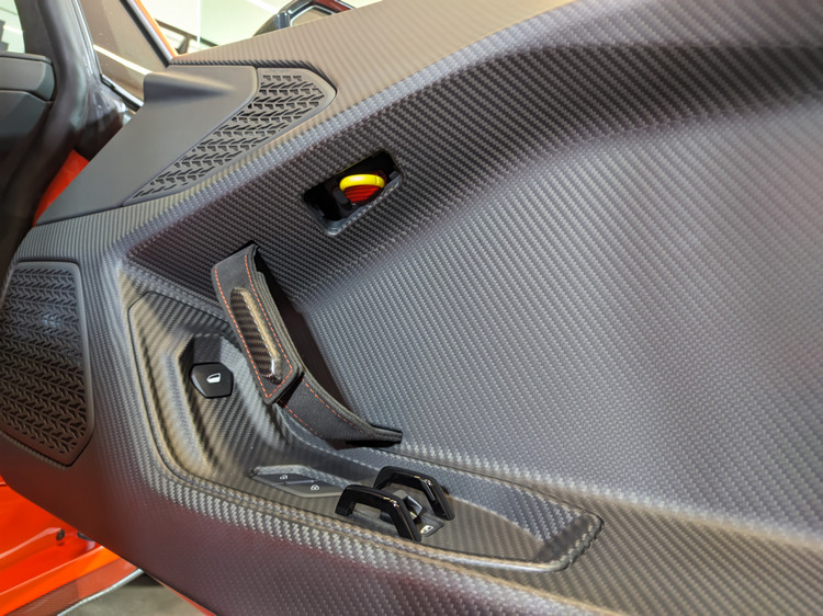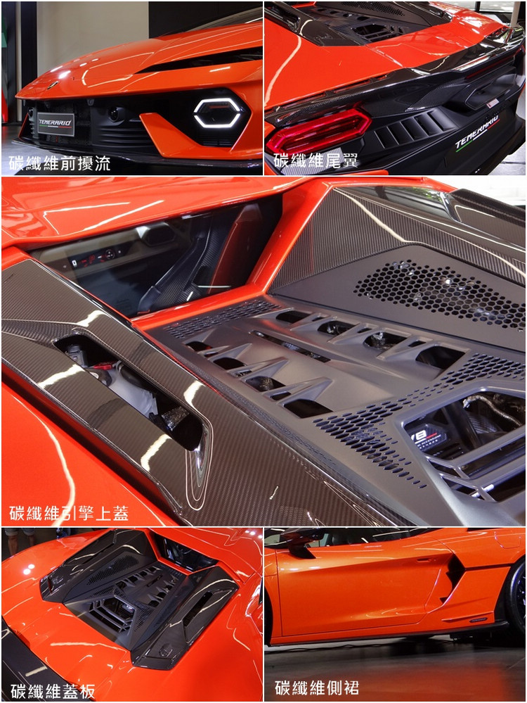 若是客戶有意追求更輕巧、強大的下壓力,還能選配碳纖維後擴流器、後碳纖維視鏡蓋和碳纖維側進氣口,而以上提及的所有選配部品,都已由Lamborghini原廠提供的這部全球展示車向媒體及貴賓呈現。