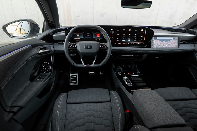 全新 Audi A6 e-tron 採用最新 E3 1.2 電子架構,打造沉浸式 Audi Digital Stage 數位互動座艙,以駕駛者為核心設計,標配三具數位螢幕:11.9 吋 OLED 全數位儀表、14.5 吋中央觸控 OLED 螢幕、10.9 吋副駕專屬螢幕,系統整合 Audi 原廠導航、Apple CarPlay 與 Android Automotive OS,實現全方位資訊娛樂與無縫連結,帶來未來感十足的數位豪華體驗。受惠於純電平台的平整化車室設計,後座空間更顯寬敞舒適;同時在細節上兼顧質感,A6 e-tron performance 以上車型標配可變色採光全景式玻璃車頂,營造開闊明亮的座艙氛圍。另可選配 Bang & Olufsen 3D 環繞音響系統,透過多達 20 具揚聲器與 830 瓦最大輸出,將車室化身劇院級沉浸式聽覺饗宴。