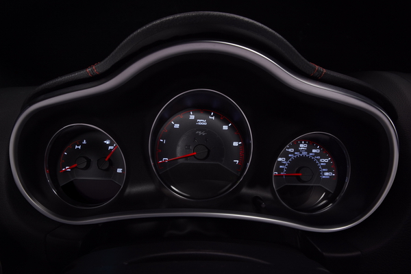 ![]() 內外裝承襲R/T一貫的運動風格,配備與車身同色的大型水箱罩、專用18吋鋁圈、後尾翼、燻黑式頭燈等。內裝則以皮革或織布跑車座椅與配置於中控台中央的儀錶最為搶眼。
