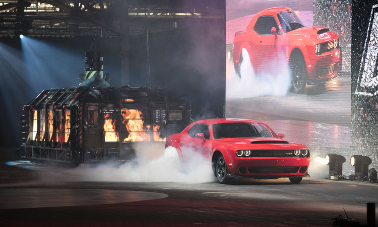 Dodge經歷兩年研發,推出史上最強肌肉車Challenger SRT Demon,只需2.3秒就能完成0-60英哩的加速,一舉刷新全球量產車世界紀錄,而它靜止起步時,車頭揚起高度89cm與1.8G加速重力加速度的驚人數據也獲得認證成為世界之冠!