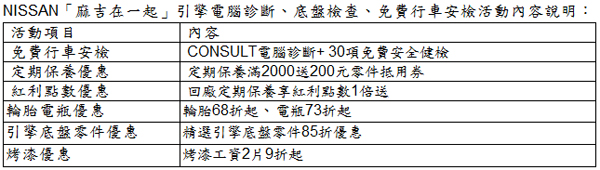 相關活動詳情,請洽NISSAN服務專線 0800-088888,或NISSAN官網www.nissan.com.tw。