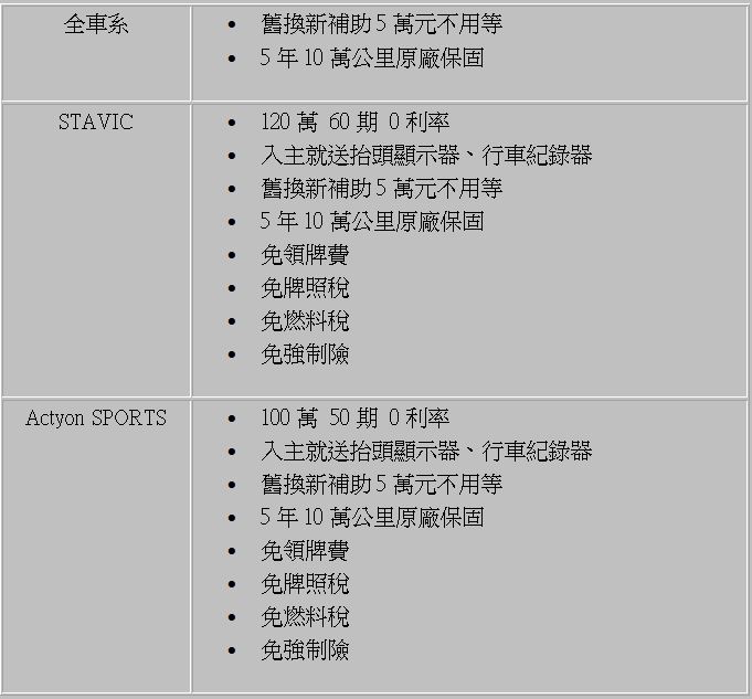 SsangYong三月份促銷優惠