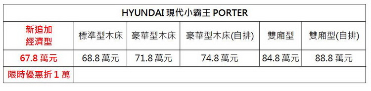 現代小霸王PORTER追加全新經濟型! 限時優惠61.8萬元