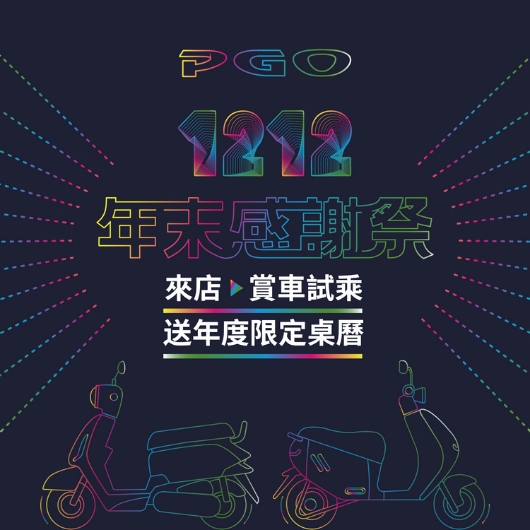 為慶祝台灣精品獎20連霸,本月藉由雙12感謝祭,PGO祭出到指定門市送限量好禮活動,活動自即日起至12/19止,凡至官網活動網頁中的指定店家賞車試乘,就有機會拿到限量的2022年PGO精美桌曆。數量有限,送完為止,快點來收藏!