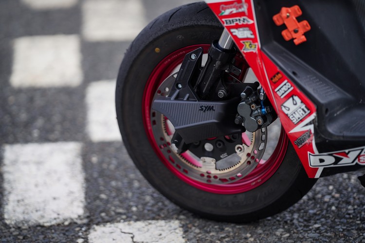 本次的五重送優惠,最引人注目莫過於是冠軍剎車導風罩了,源自於世界頂級機車賽事的技術,藉由導入車輛前方的冷空氣,經漸縮式的導風管設計,冷卻因激烈操駕而產生高熱的剎車來令片與碟盤。經SYM研發部門與賽車車隊實際測試,於高強度的比賽中能將原先高達300℃的剎車系統穩定降溫至200℃,而模擬日常的騎乘狀況則是由130℃降至100℃,整體降溫25~30%,有效降低剎車系統的熱衰竭狀況,提升剎車效能與耐久使用。