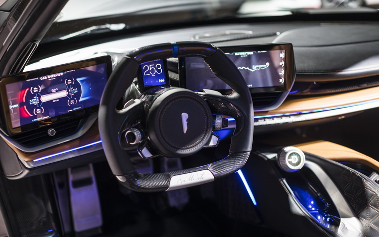 Battista的動力單元來自克羅埃西亞的汽車公司Rimac,位於前後軸的四個電動馬達可輸出1900hp最大馬力以及2300Nm最大扭力,其強大的四驅動力架構也導入了扭力向量傳導機能。0-100km/h加速在2秒以內,0-300km/h加速也僅需不到12秒,0-100km/h加速已是可以巴掉F1的程度。車上提供五種駕駛模式,極速超過350km/h。鋰離子電池以「T」字形配置於中央鞍座與座椅後方,蓄電量為120kWh。電池充飽電一次可以行駛450km,並支援急速充電。