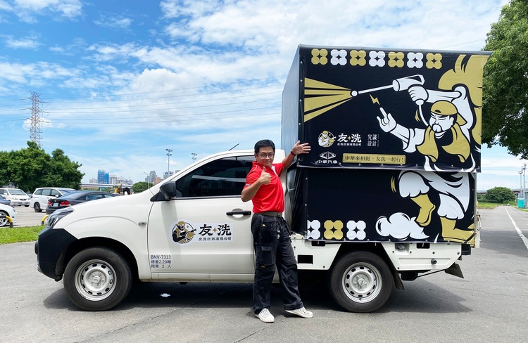 因受疫情影響,台灣失業人口突破42萬人,中華汽車為協助街友就業,翻轉人生,以企業力量支持《做工的人》作家林立青微型創業,從作家轉型成頭家,這回,林立青帶領街友組成可移動服務的清潔團隊,並於社會創新模式下成立「友洗社創」,期望以實作培力建立街友專業清洗職能。中華汽車長期推動ESG,力挺做工的人,大力贊助「友洗社創」ZINGER PICK UP三開型車款,透過商用車一條龍改裝服務,打造成為符合洗地所需的工作用車。「友洗號」投入至今,陪伴街友出勤洗地,服務次數達23場,累積里程逾7,000公里,林立青信心滿滿的表示:「未來我們計畫前進校園、公共區域及宗教聖地,除了給弱勢者一個自力更生的機會回歸社會,更希望他們能夠進一步回饋社會。」