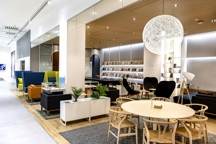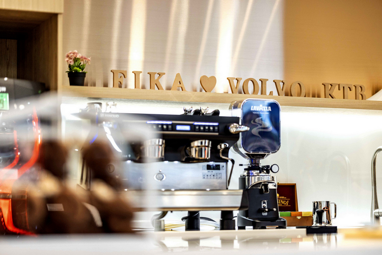 二樓規劃新車展售與客休空間,包含新車展示區、客戶休憩區、Volvo Fika、洽談室、商務區、精品展示區、兒童遊戲室、育嬰室與友善廁所。凱桃汽車特別聘請航空公司專業講師訓練接待團隊,只為提供 VOLVO 車主尊榮如頭等艙等級的頂級服務。等待愛車期間,車主可以享用與胡同燒肉合作的精緻餐點、全球前三大咖啡烘焙商 LAVAZZA 供應的現磨咖啡、法國藍帶主廚學院認證的 Patisserie F2 特製法式點心。