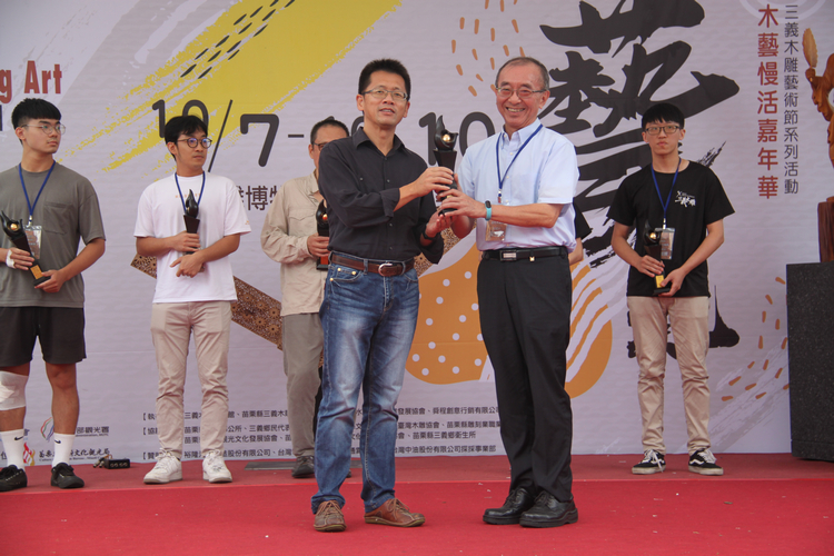 苗栗縣2023三義木雕術節開幕式暨「臺灣國際木雕競賽」頒獎典禮,今(7)日於三義木雕博物館前盛大辦理,裕隆汽車副總經理李建輝代表頒發裕隆設立之獎項:裕隆木雕薪傳獎得主紀永泓,作品《斗燈》;裕隆木雕創新獎得主林芝萱,作品《太陽雨》,兩位創作者藉由木雕創作展現傳統技藝與創新意象,分別獲頒獎金30萬元,共計60萬元整。