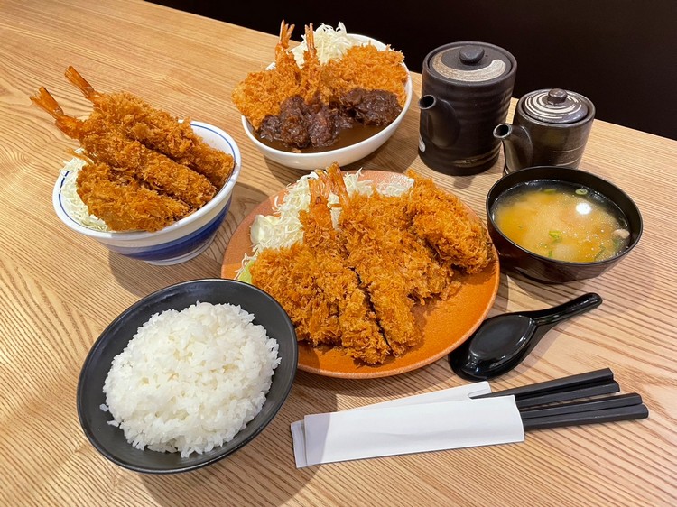 餐點內除了招牌的里肌豬排、腰內豬排、酥炸海老,還有期間限定才有的新鮮酥炸魚。四種皆以獨門的日式炸粉下去包裹,擁有外酥內嫩的極鮮口感。特色炸魚選用特級新鮮的魚片,除了外皮的酥脆口感,每一口都吃得到魚肉的鮮甜,加上蔬果熬製而成的酸甜豬排醬汁,風味更勝一籌!一份就能同時吃到四種不同滋味,享受海陸交織的高CP值以及美味。