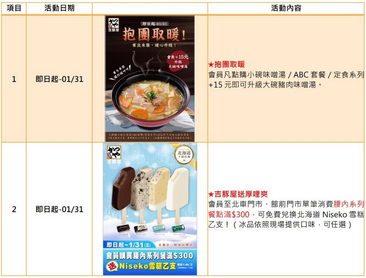 寒流來得太快怎麼辦?別擔心!來碗暖呼呼的味噌湯去去寒!即日起至01/31日止,到〈吉豚屋〉點購小碗味噌湯、ABC套餐、定食系列只要加15元,輕鬆升級大碗豬肉味噌湯!讓你不只喝得飽,心頭也暖暖!