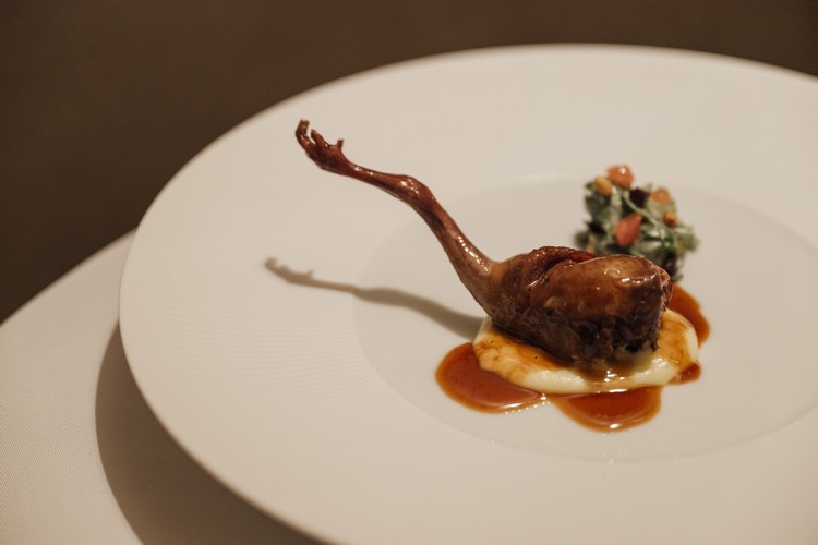 在第一道主菜「馬頭魚、白蘆筍、歐芹」,為了讓貴賓能品嚐春季馬頭魚的鮮美,主廚不辭辛勞於半夜親自前往基隆崁仔頂漁市,精心挑選最新鮮的魚獲,並以香煎白蘆筍為配菜,點綴少許紫蘇花,呈現出輕盈而獨特的風味。另一道主菜「乳鴿、托斯卡尼風味豬背脂」,亦展現主廚精湛廚藝以及他對食材的獨特見解,主廚以托斯卡尼的傳統料理作為靈感,特別為Lexus自製醃製3個月的Lardo豬背脂,乳鴿更搭配煙燻馬鈴薯泥創造口感變化,讓每一口都帶來豐富層次,是一道結合傳統與創新的精心料理。