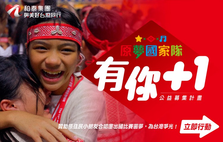 和泰集團期許為原民孩童種下不同的夢想種子及想像,鼓勵每位擁有天賦及才華的孩子追尋更遠大目標,原夢的心永遠沒有終點。未來,和泰集團發揮公益影響力更邁向永續經營「與美好台灣同行」,帶領集團積極投入ESG領域(環境Environment、社會Social、治理Governance),與台灣一同成長,創造更美好的未來。 • 和泰集團原夢國家隊【有你+1】公益募集計畫:https://event.hotaigo.com.tw/event/DreamVoyage/index.html • 更多和泰集團公益行動,請關注「和泰集團ESG•與美好台灣同行」粉絲專頁:https://www.facebook.com/Hotai.lovestart