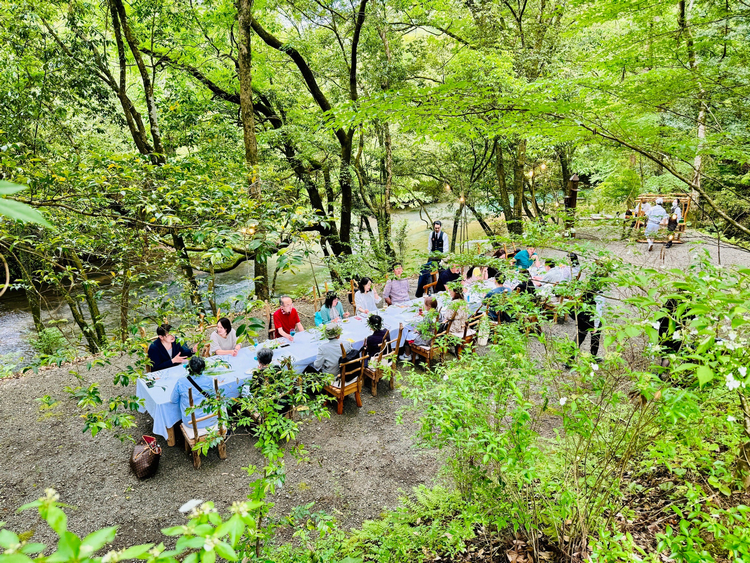 旅程特別安排來自日本與台灣的車主,一同前往群樹環繞、綠意盎然的天空之森。在清脆鳥鳴與涓涓河畔的陪伴下,享用一頓被綠意包圍的午餐,親身體驗最講究、最高雅的日式生活品味。更在精心規劃下,踏進了位於山林深處的普光寺,在這片寧靜祥和的寺院中,進行一場別開生面的阿字觀冥想之旅。在住持的引導下,車主們聚精會神地專注於冥想,沉浸於普光寺獨特的景色氛圍,在寺院中穿行的清風輕拂,百鳥高歌,伴隨著綠意美景,形成了一幅令人難以忘懷的畫面。