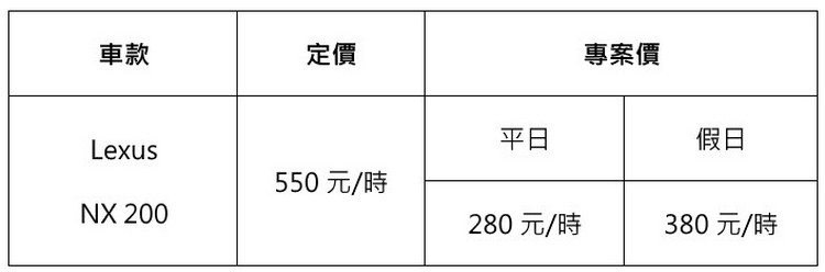 iRent租金專案價每小時280元起,為慶祝新導入Lexus NX 200進駐同站租還,iRent祭出限時優惠:即日起至12月6日(五),平日租用NX 200時數2小時(含)以上,週週加碼送租車30分鐘折抵券1張;另外,11月底前租iRent至全台任一縣市,可於「旅遊台灣、集章挑戰」活動網頁中蒐集所在縣市紀念章,集滿指定數量就能兌換iRent時數或折抵券、挑戰成功紀念磁鐵(活動內容詳見:https://ourl.tw/tmWHBm),敬請民眾把握機會,一起租iRent拿超值好禮。