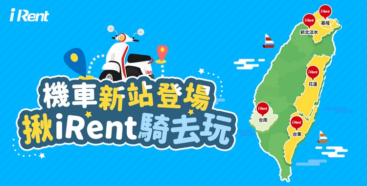 為提供用戶更便利的租還服務,iRent共享機車服務版圖再擴大!12月1日起,「同站租還」前進花蓮、台東、基隆、淡水共四個國旅熱門據點。為慶祝iRent機車新據點上線,iRent特推出雙重驚喜回饋活動,會員除體驗便捷的電動機車自助租還服務外,還可享有開廂禮、抽大禮包,邀您一「騎」來趟輕鬆自在的低碳之旅,探索城市街區的樣貌風情!