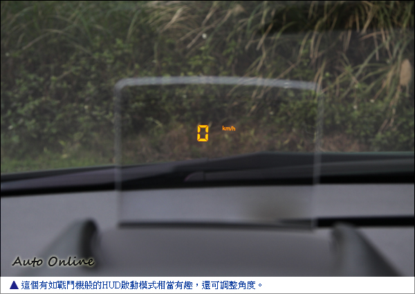 此外有如戰鬥機一般的HUD也相當推薦。雖然上方顯示的資訊不是很多,但它開啟的方式還可調整角度的設計不但夠炫也相當實用,建議大家真的直上152萬的頂級版,除了多HUD之外座椅也會從絨布椅變皮椅。