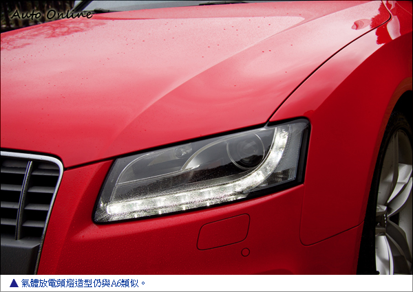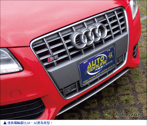 車頭看起來差別度就不大了,頭燈還是長方形狀,大面積單體盾形水箱罩是標準制式設計,最多就是頭燈下面二個將圓形霧燈整合起來的進氣口輪廓變得比較有稜有角些。整體來說,四門的Sportback車型除了「門數」不同外,仍然完整地保有了雙門的A5/S5的Coupe運動風格。
