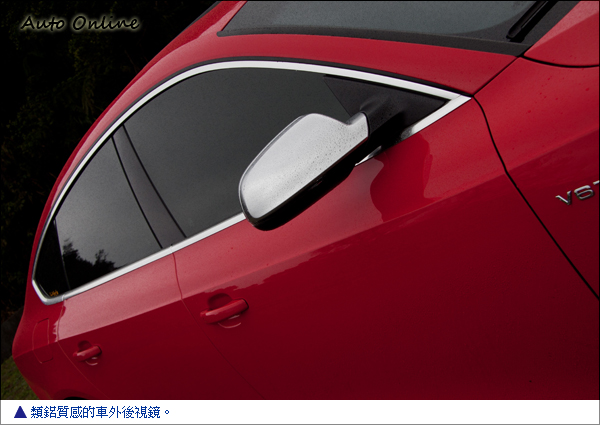 跟A4、A6這些標準四門房車相比,S5 Sport確實多出了不少的運動氣息。從車頭前緣向後劃出的車身肩線並非一路平直到底,而是帶有一點平緩弧度的波浪般曲線巧妙與前輪拱及C柱部分相互融合。車門下緣的折線也相當明顯,與後保桿的折線連成一氣,只要光線稍微有點角度就車身側面就可以清楚呈現光影變化,在視覺上有相當的加分作用。