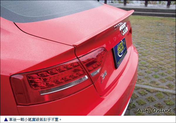 不過,S5 Sportback到底又與A5 Sportback外觀上到底又有多少差別呢?其實不多:車頭的前下擾流板採金屬質感處理、側裙、S5專屬鋁合金塗裝車外後視鏡、S5專屬後擾流尾翼;輪圈與輪胎的搭配是跑味更上一層的五幅式雙肋鋁圈搭配255/35 19吋輪胎。排氣尾管則從A5 Sportback的左右單出改為左右雙出形式。這些細部的差異不是熟車的人還真是難以分辨,最簡單的辦法大概就是直接看車頭、車尾的「S5」徽飾還比較快。「S」的獨特性越來越薄弱也是AUDI性能車迷們比較感嘆的地方。
