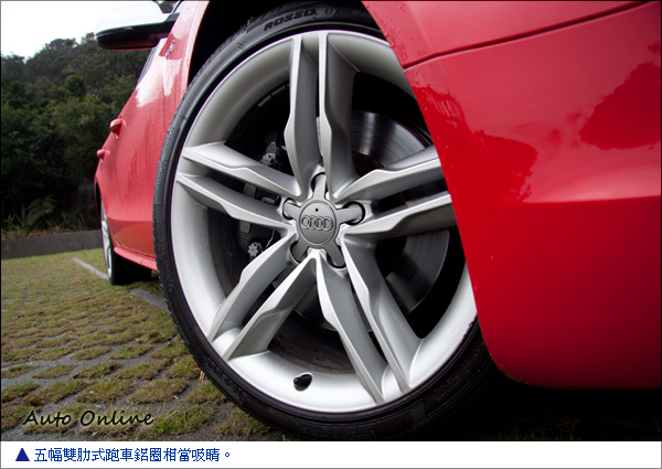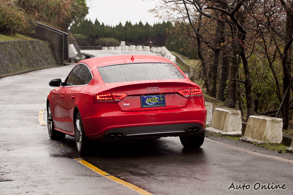 Quattro四輪傳動系統維持一貫的後輪扭力輸出比例較大原則,讓車子有不錯的行車動態穩定性,不過在大角度低速集彎較多的山道中,過彎的靈敏程度仍不算太犀利,來Push駕駛者更積極地催促油門。在山路上的行路感覺較為寫意,反倒是在車流稀少可以跑高速的路段上,S5 Sportback在動力上給予駕駛者厚實的支援,能夠體驗更多的駕駛樂趣。