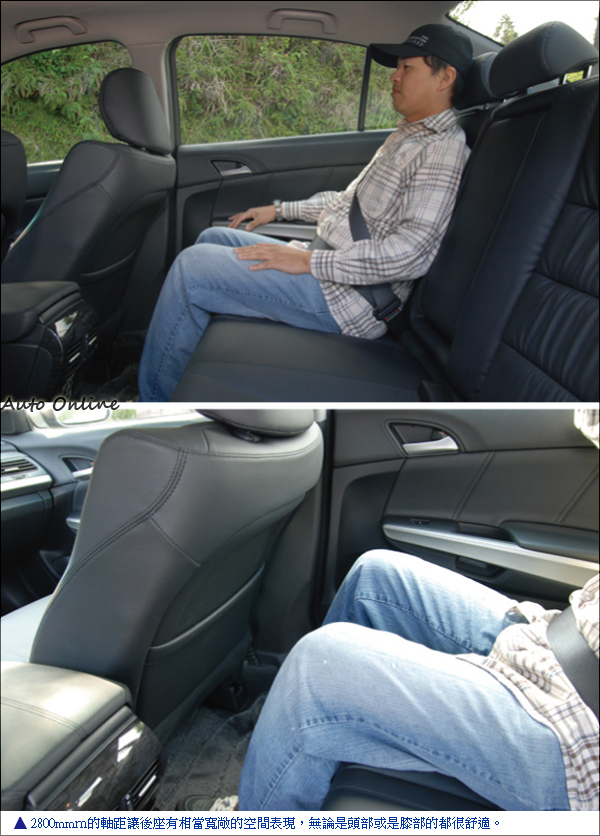 車身放大最直接的好處在於室內空間的運用,在正常坐姿的前提下,後座空間