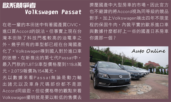 也就是說你很難去找到有這樣的一群人會要像Accord這樣長達四米九的國產車款?要載老闆百來萬的售價加一點衝歐系品牌進口車之姿好像更有派頭,而要自用又稍嫌大台一點。我想除了計程車還真想不到這樣中大型房車到底要賣給誰?